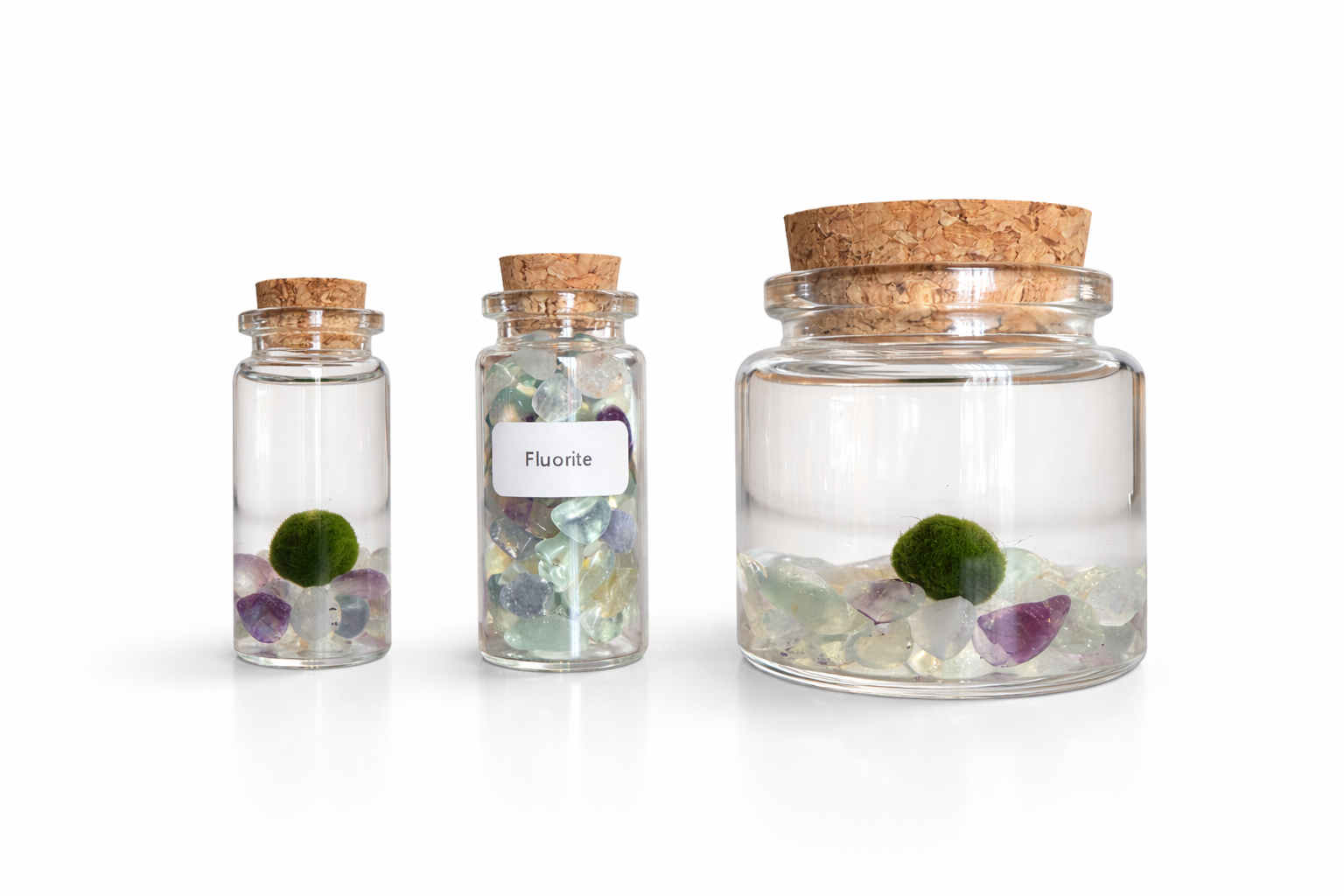 Meet your new favorite low-maintenance friend: the Marimo moss ball! These velvety green cuties live in a cozy jar of water, where they gently float, roll, and bring calm vibes to any space. But the magic doesn’t stop there — each Marimo lives alongside beautiful crystals of your choice! Whether it's calming amethyst, energizing citrine, or loving rose quartz, the crystals add a unique sparkle and meaning to your mossy friend’s little underwater world.